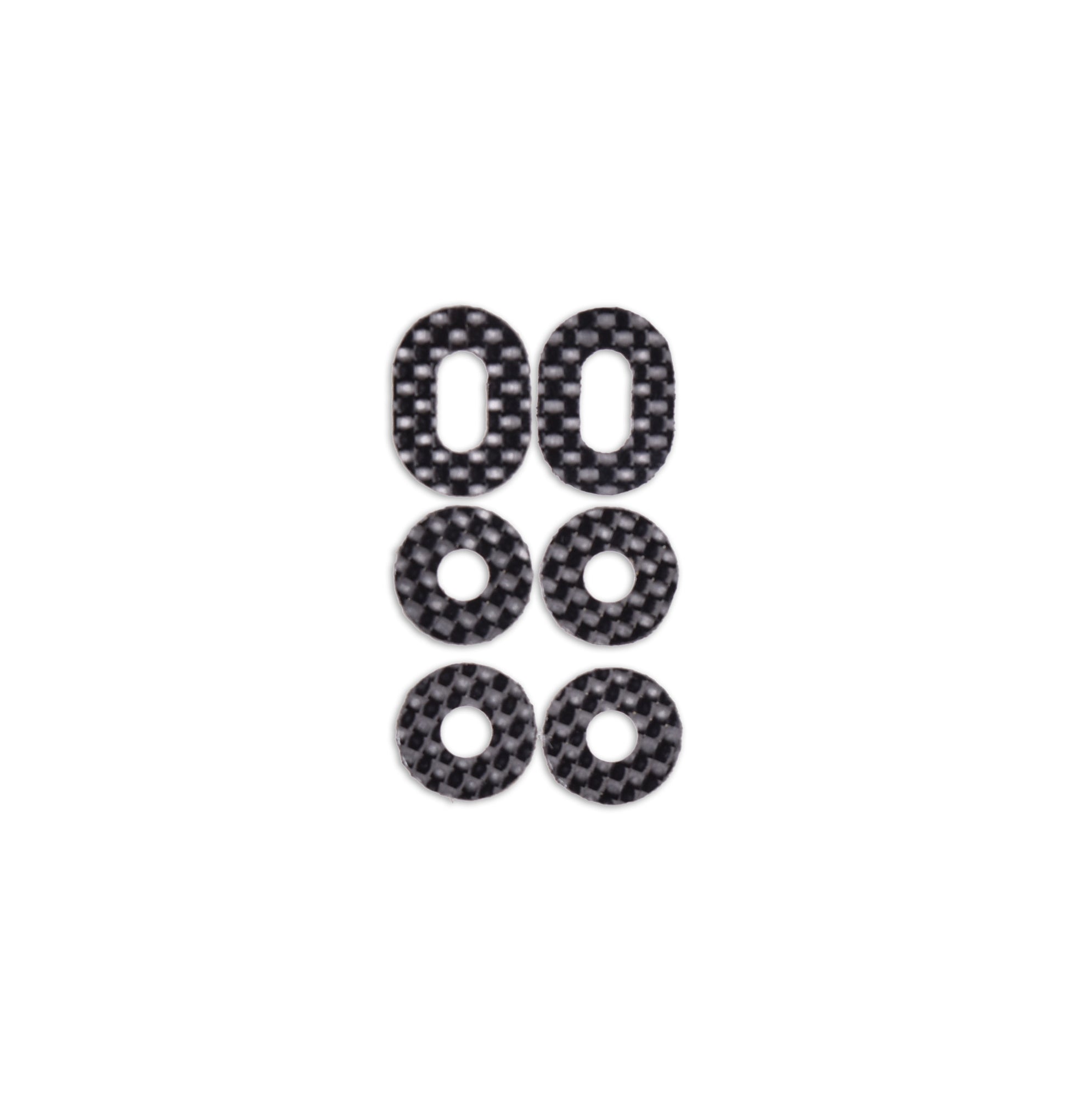 Make your lexan bodies last longer with these stick on protective dots. The 5mm I.D. is perfect for most 1/10 scale applications. Made out of .25mm carbon fiber and 3m adhesive easy peel and stick. Pack of six to meet all your needs.