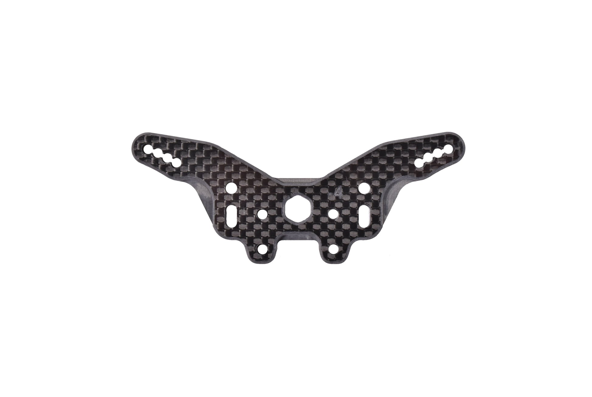 Introducing the -4mm carbon fiber 4mm rear shock tower for the Schumacher Cougar LD3. It incorporates micro tune shock positioning. Webbing has been added for extra strength. Also all the edges have a nice chamfer.