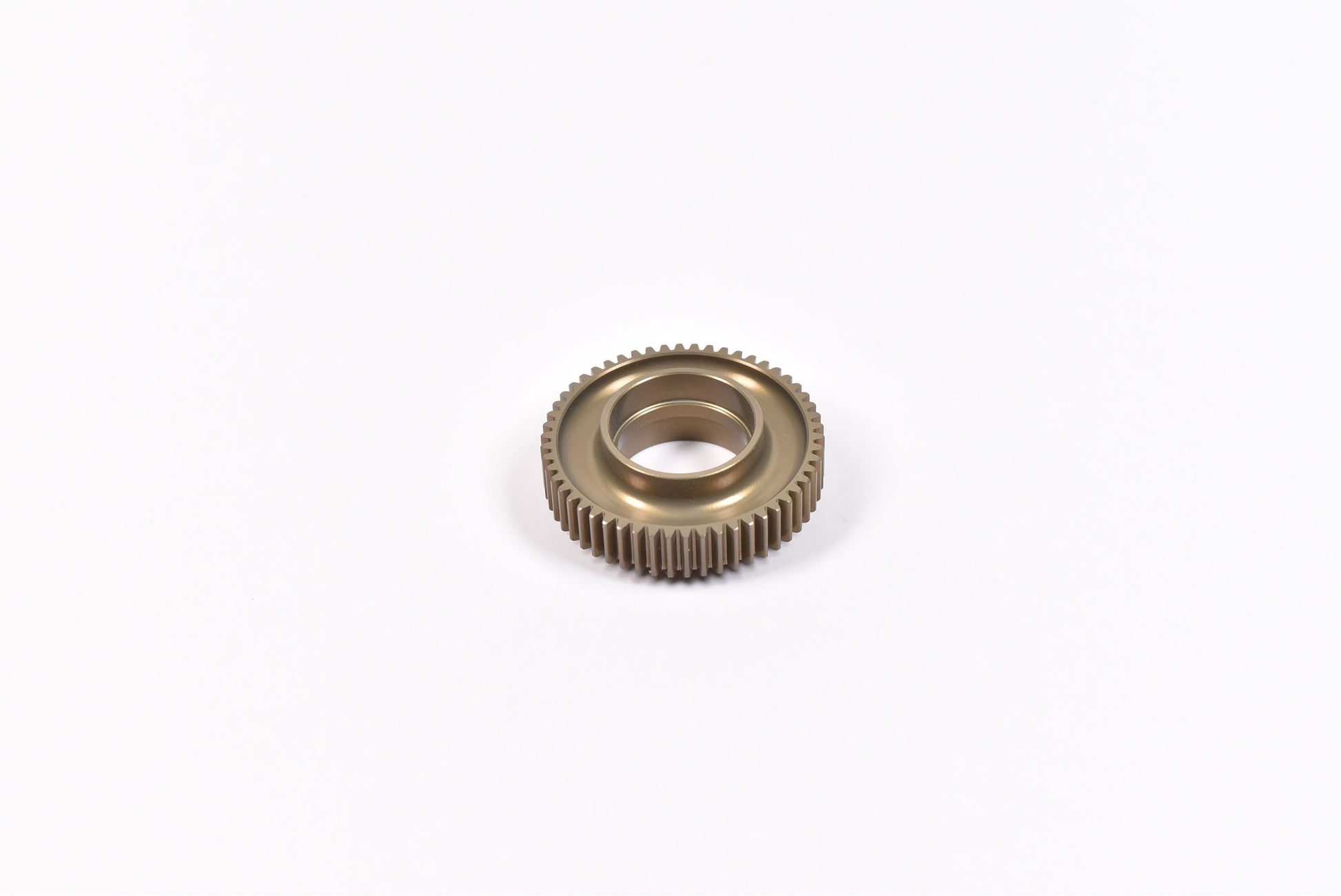 This is a hard anodized narrowed aluminum idler gear for the Team Associated B7.1, B7.1D, T7 and SC7 three gear transmission. Made for spec racing. Reduced teeth engagement helps reduce drag but still keep most of the aluminum strength. Overall weight of the gears is 4.8g.