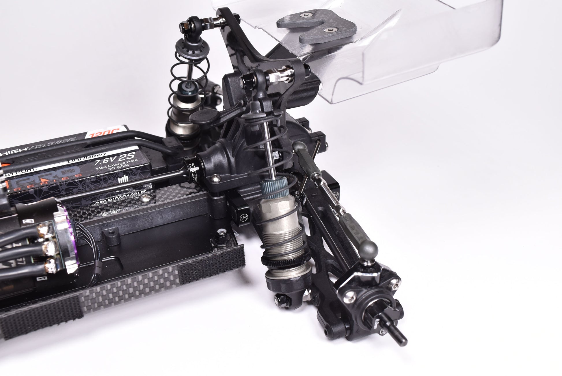 To maintain precise shock movement without unwanted play or slop, the kit also includes two separate Delrin shock bushings and two 1.5mm thick spacers.. Delrin is a high-performance engineering thermoplastic known for its low friction properties. These bushings effectively minimize friction and provide smooth shock movement, contributing to improved overall suspension performance.