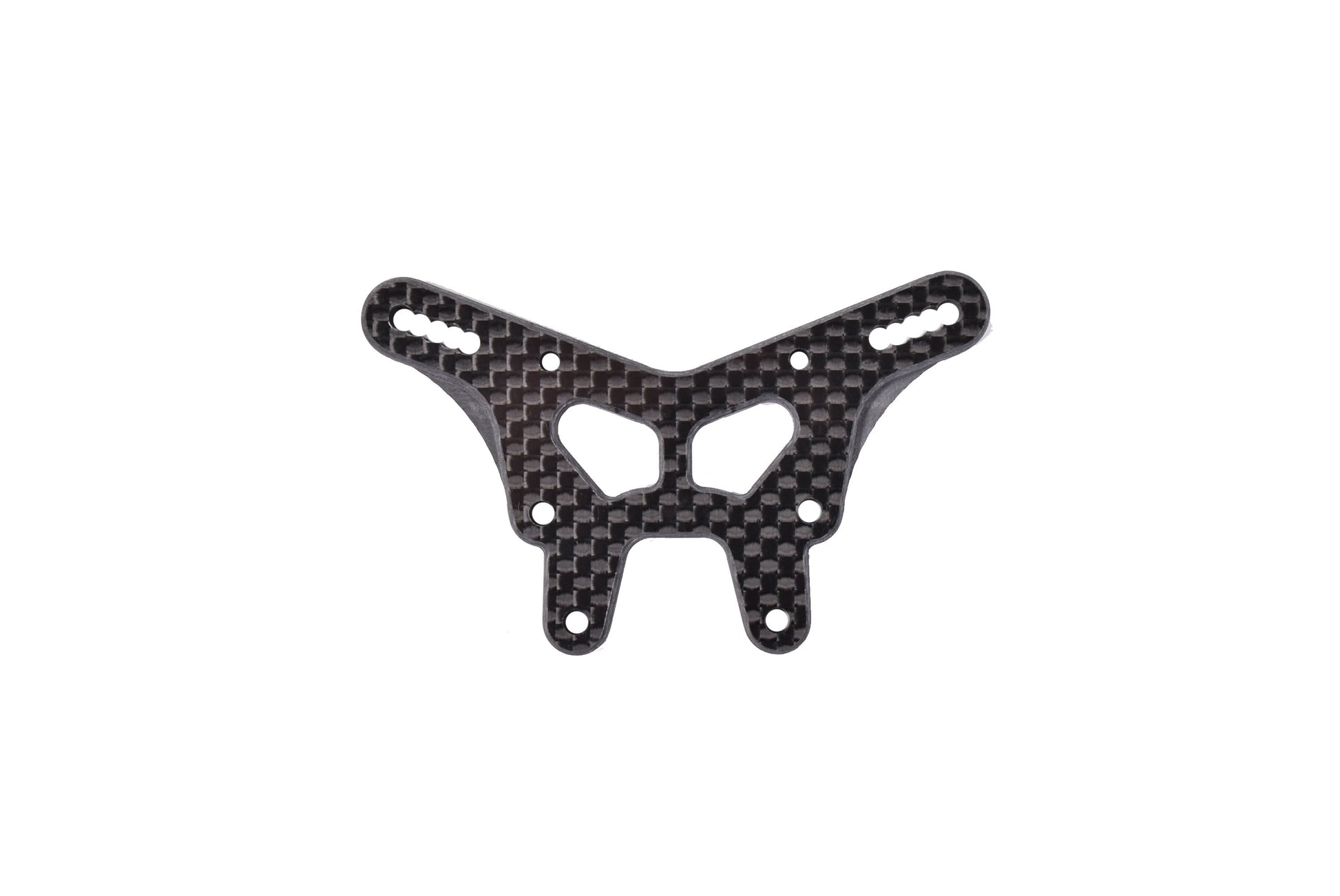 4mm carbon fiber -2mm front shock tower for the TLR 22X that accepts the stock tower guard. It incorporates micro tune shock positioning. Webbing has been added for extra strength. Also all the edges have a nice chamfer.
