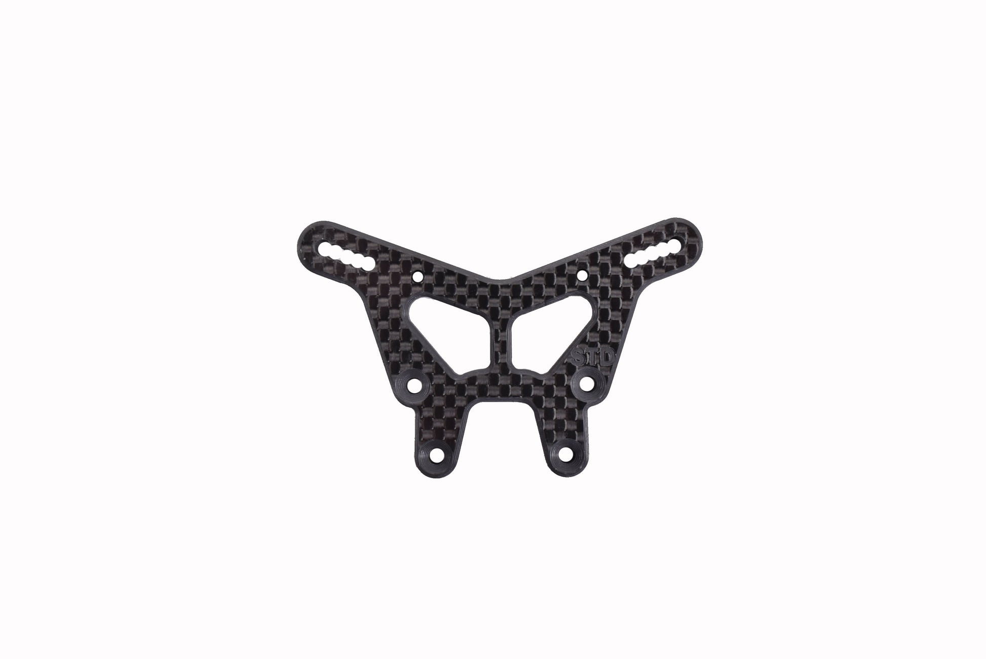 5mm carbon fiber STD front shock tower for the TLR 22X. It incorporates micro tune shock positioning. Webbing has been added for extra strength. Also all the edges have a nice chamfer.