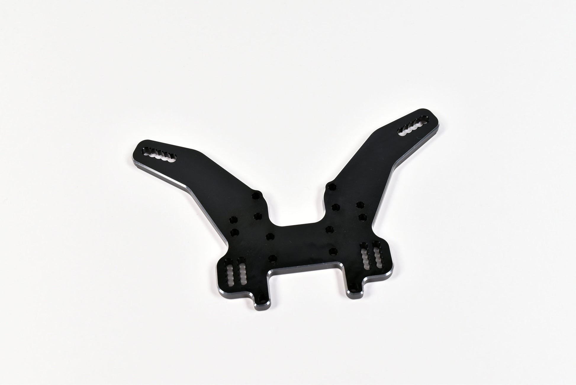 TLR aluminum rear split shock tower for the TLR Eight-XT/XTE. Tower includes the stock wing height holes along with the optional +10mm wing height holes. It incorporates micro tune shock positioning. Also all the edges have a nice chamfer.