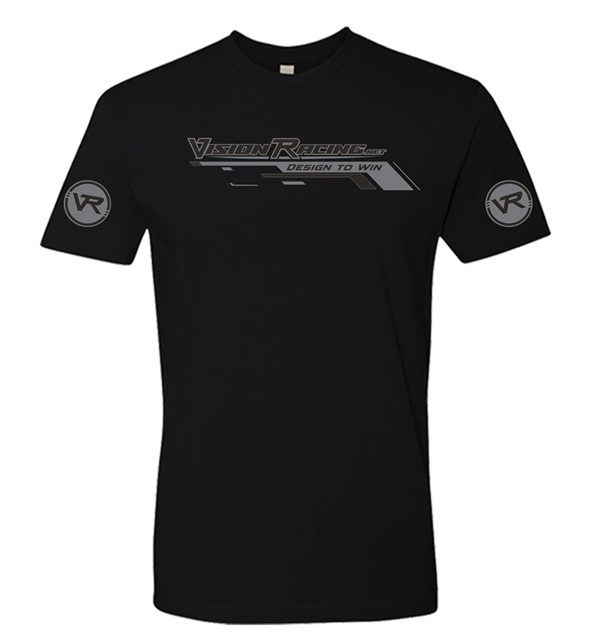 T-Shirt - Design to win, the official slogan for Vision Racing. Grey on black is subtle but great for everyday use.