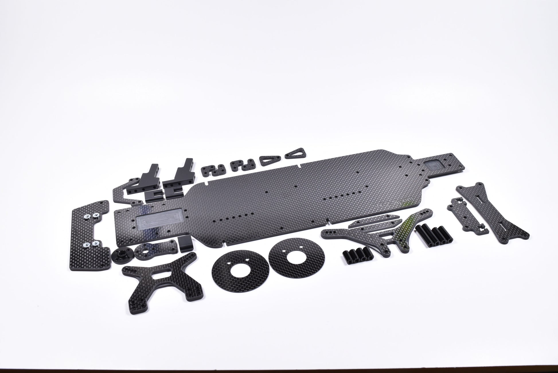 Introducing the Vision Racing AE Sprint car carbon chassis conversion for the Team Associated B6 Builder's Support Kit or B6.1 thru B6.4 donor car. Includes chassis, 20 degree aluminum front tower pivots, battery tabs and side braces for long or shorty packs thin or thick, aluminum stand offs, front and rear shock towers, front and rear bumpers, direct servo arm, servo mounts, rear wheel dirt guards and mounting hardware.